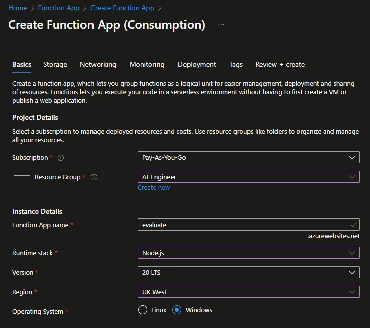 - Create a new Function App: Navigate to “Create a resource” > “Compute” > “Function App”.